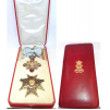 Grand Cross Set, intituted in 1906. Sash Badge, 105x77 mm, gilt Silver, trefoiled, red enameled, GOLD edge and 9 rays between the limbs. Silver crowned eagle, spreaded wings on the cross, holding a sword in the right claw and a scepter in the left. Round GOLD medallion on the eagle's chest with King Carol's 1st bust, on the reverse a blue medallion with the legend: "1866-10 Mai-1906", in the centre, King Carol I cipher. Above the cross a silver crown and the inscription: "1866-10 Mai-1906". Below, a GOLD scarf with blue enameled legend: "Prin statornicie la izbanda", original light blue sash. Breast Star, 1st Model, 85 mm, gilt Silver, hallmarked "800", maker's mark "Paul Telge, Berlin", the shape of an 8 rays star, eagle in the center. The Order of Carol I, the highest Romanian Order, instituted on May 10th, 1906, part of the 40th jubilee celebration of King Carol of Hohenzollern, was awarded until 1932 in 4 classes: Collar, Grand Cross, Grand Officer and Commander. With the introduction of the Order of Loyal Service in 1932, the last two classes of the Order Carol I were closed, but the decorations could be worn until 1947. An extremely rare set in perfect condition! RR! I